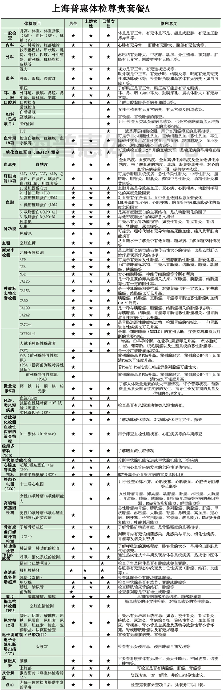 上海普惠体检尊贵套餐